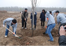 在本次活動(dòng)中,我所的青年員工和在讀學(xué)生共200多人,在林滸所長(zhǎng)、研究生部丁健主任和團(tuán)干部的帶領(lǐng)下于上午九時(shí)半共赴植樹(shù)場(chǎng)地工程驗(yàn)證中心門前空地。在所后勤師傅的協(xié)助下,青年們有序地加入植樹(shù)活動(dòng)的行列中,大家手持鐵鍬,干勁十足,將一棵棵充滿生機(jī)和希望的樹(shù)苗植入場(chǎng)地內(nèi),現(xiàn)場(chǎng)氣氛熱烈,看著大家那份對(duì)綠色的癡情,的確令人感動(dòng)。所領(lǐng)導(dǎo)親自上陣,用鍬用鎬為小樹(shù)建家,并成功地種植了第一棵樹(shù)苗,為我們做出了榜樣。所領(lǐng)導(dǎo)、同事和同學(xué)們辛勞的汗滴滑入滿載希望和愛(ài)心的土壤中??v然土中有很多石塊,縱然天空下起小雨,縱然場(chǎng)地濕滑泥濘,大家仍齊心協(xié)力為小樹(shù)創(chuàng)建了一個(gè)舒適的窩,并為它澆灌生命之水。