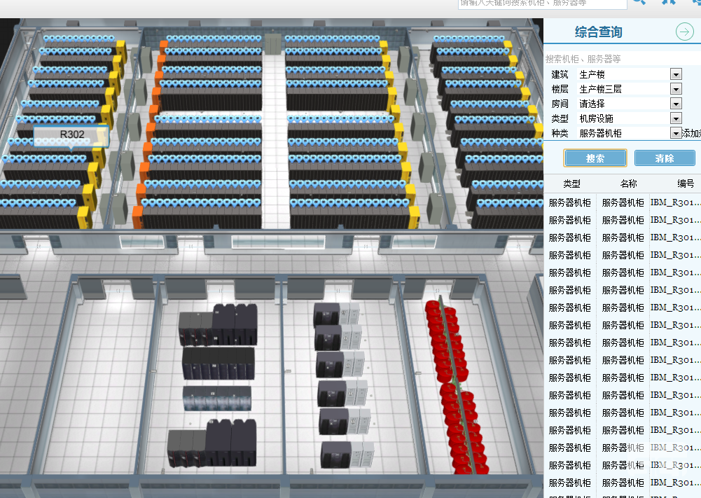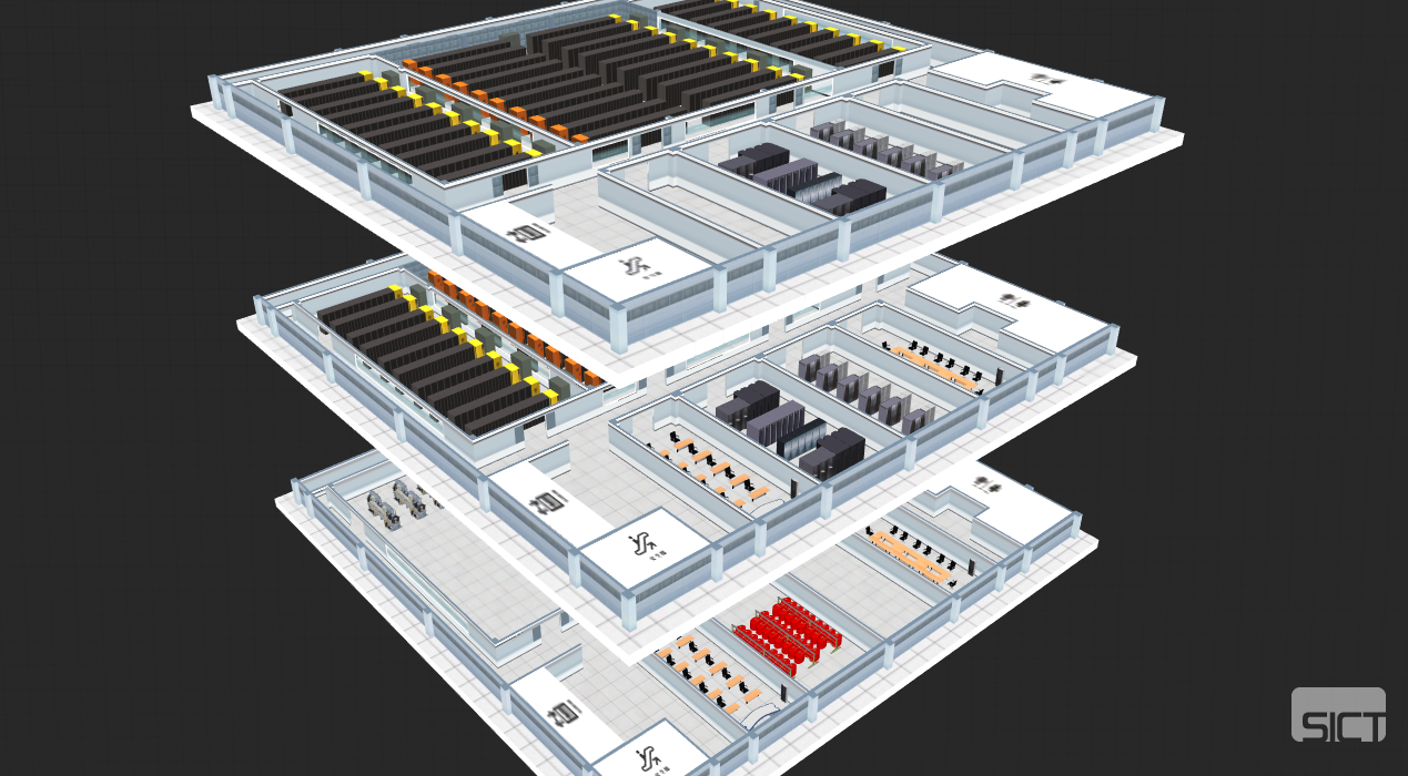 系統(tǒng)可根據(jù)真實(shí)的比例關(guān)系,對園區(qū)建筑以及樓層、房間等建筑內(nèi)部結(jié)構(gòu)進(jìn)行高仿真建模,并對數(shù)據(jù)中心全部設(shè)備的分布情況進(jìn)行真實(shí)模擬。