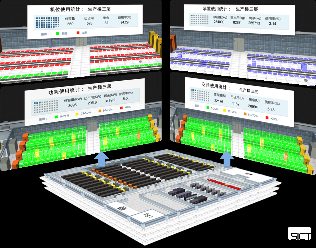 系統(tǒng)能夠?qū)?shù)據(jù)中心的空間、電力、承重等容量信息進(jìn)行精確統(tǒng)計(jì)和展現(xiàn),幫助數(shù)據(jù)中心更加有效地管理機(jī)房容量資源,使機(jī)房的各類資源的負(fù)荷更加均勻,提升數(shù)據(jù)中心資源使用效率。